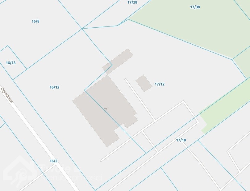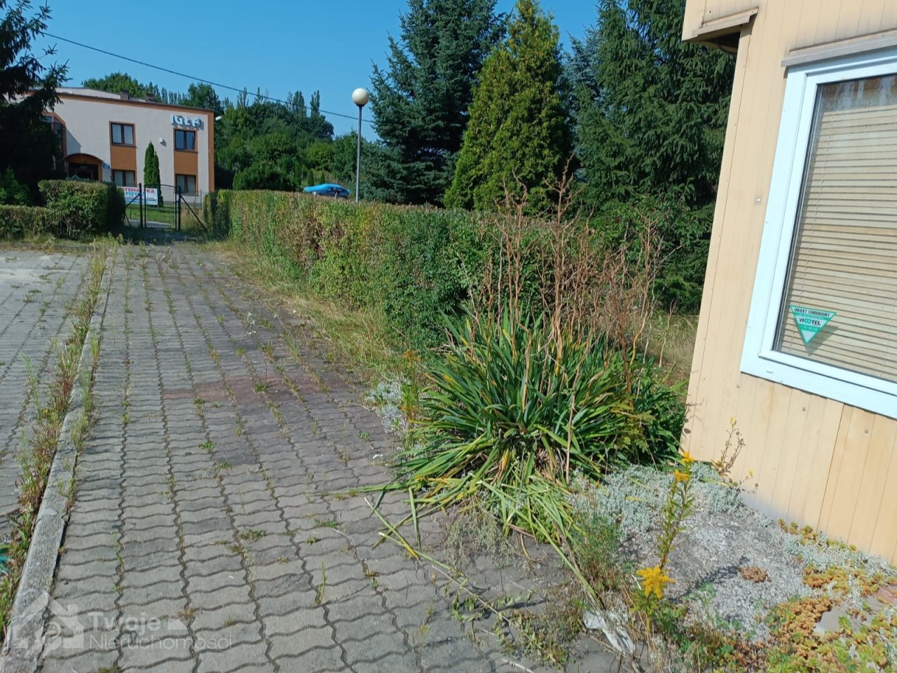 Teren ogrodzony, z nasadzeniami, chodnikami i placem manewrowym z kostki brukowej