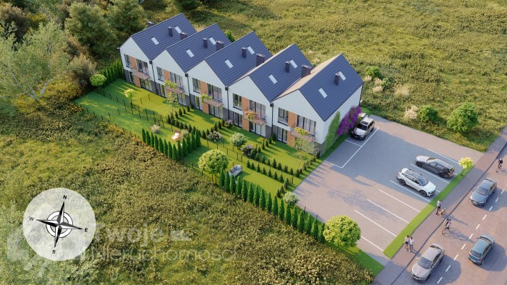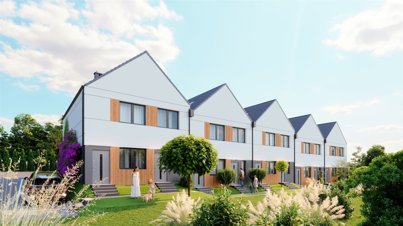 - 5 mieszkań parterowych o powierzchni 61,11 m² z bezpośrednim wyjściem do prywatnego ogródka,